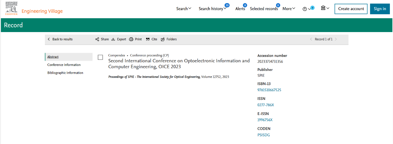 Index: The OICE2023 proceedings have been indexed by Ei and Scopus.