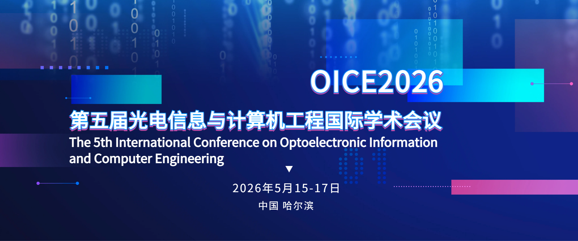 第五届光电信息与计算机工程国际学术会议(OICE2026)将于2026年5月15-17日在中国哈尔滨召开,本次会议由哈尔滨工业大学航天学院主办。会议设有多专题分会,包括大会报告,邀请报告,口头报告和海报展示等多个环节。谨代表组委会,诚挚邀请您参与OICE2026,共聚魅力哈尔滨!